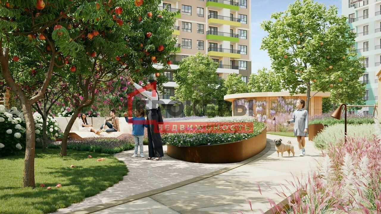 - теплицы со свежими овощами и фруктовые деревья во дворе жилого комплекса;