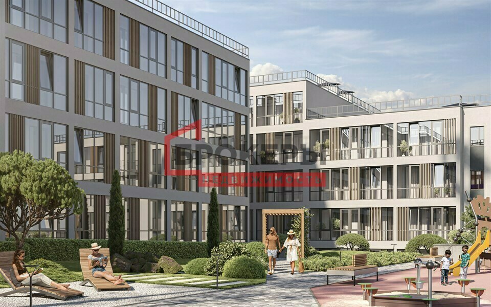 Придомовая территория оборудована игровыми площадками для детей и местами отдыха с беседками. Закрытый двор без машин позволят детям безопасно проводить время на свежем воздухе. Во всех квартирах имеются большие террасы с великолепным видом на Черное море или горную местность.