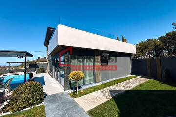 - 1 этаж: Просторная кухня-гостиная и столовая с панорамными окнами и дизайнерской кухней, уютная спальня, современный санузел и гардеробная.