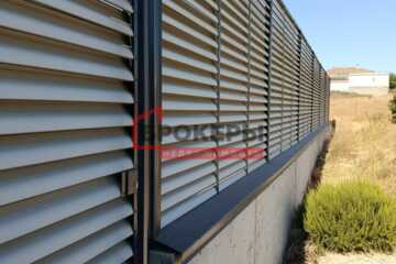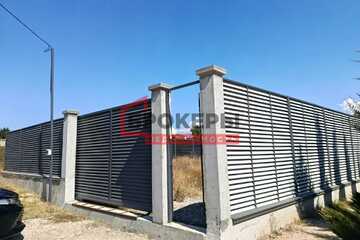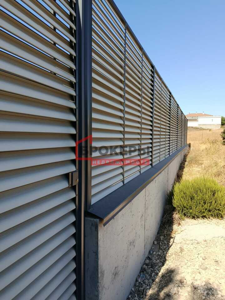 По периметру огорожен металлическим жалюзийным забором на бетонном фундаме тонте, высотой 3 м. Установлено две калитки с автоматическими замками и откатные ворота шириной 4,5 м.
